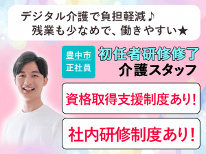≪豊中市/初任者研修修了/正社員≫◆月収例25.5万円◎賞与2.0ヶ月分◎資格取得支援制度あり◎社内研修制度あり◎デジタル介護で負担軽減◆サービス付き高齢者住宅でのお仕事です☆(osa)