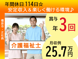 ≪橿原市/介護福祉士/正社員≫★賞与年3回◎月収例25.7万円◎マイカー通勤OK◎2021年OPENの施設◎残業ほぼなし★住宅型有料老人ホームでのお仕事です☆(kyo)