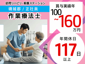 ≪磯城郡/作業療法士/正社員≫★賞与実績年100万円~160万円◆年間休日117日◆月収例40.6万円~◎残業ゼロ★訪問看護でのお仕事です☆(kyo)