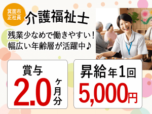 ≪箕面市/介護福祉士/正社員≫◆賞与2.0ヶ月分☆昇給年1回5000円☆月収例27.2万円☆パート契約移行可★残業少なめで働きやすい◆サービス付き高齢者住宅でのお仕事です☆(osa)