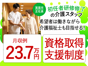 ≪箕面市/初任者研修修了/正社員≫◆資格取得支援制度♪月収例25.5万円♪残業少なめ♪研修制度充実♪賞与2.0ヶ月分◎退職金制度あり◆サービス付き高齢者住宅でのお仕事です☆(osa)