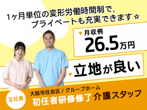 ≪住吉区/初任者研修修了/正社員≫★月収例24.7万円◎立地が良い◎昇給あり◎介護と医療の連携しているグループホームでのお仕事です☆(osa)