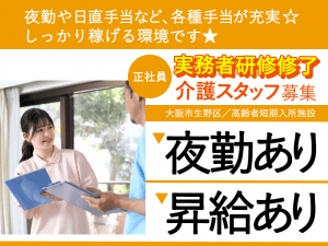 ≪生野区/実務者研修/正社員≫手当充実◎月収例26.5万円◎年間休日109日◎駅から徒歩圏内◎高齢者短期入所施設でのお仕事です☆(osa)
