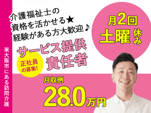 ≪東大阪市/サ責(介護福祉士)/正社員≫★月2回土曜日休み◎交通費実費支給◎月収例28万円◎福利厚生充実◎資格活かせる★訪問介護のサ責のお仕事です☆(osa)