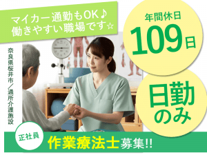 ≪桜井市/作業療法士/正社員≫★日勤のみ◎交通費支給◎月収例30万円◎賞与年2回◎昇給あり★デイサービスでのお仕事です☆(kyo)