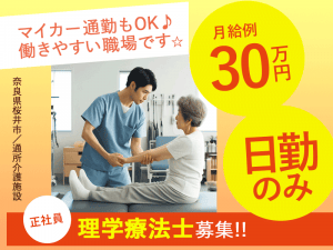 ≪桜井市/理学療法士/正社員≫★月給例30万円◎日勤のみ◎交通費支給◎賞与年2回◎昇給あり★デイサービスでのお仕事です☆(kyo)