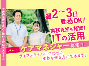 ≪泉佐野市/ケアマネジャー/パート≫★ケアマネ資格を活かしたいあなたへ!賞与年2回☆昇給あり☆週2~3日OK★介護付き有料老人ホームでのお仕事です☆
