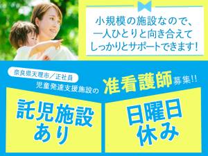 ≪天理市/准看護師/正社員≫★託児施設あり◎日曜日休み◎月収例31.3万円◎マイカー通勤OK◎資格やスキル活かせる★児童発達支援施設でのお仕事です☆(kyo)