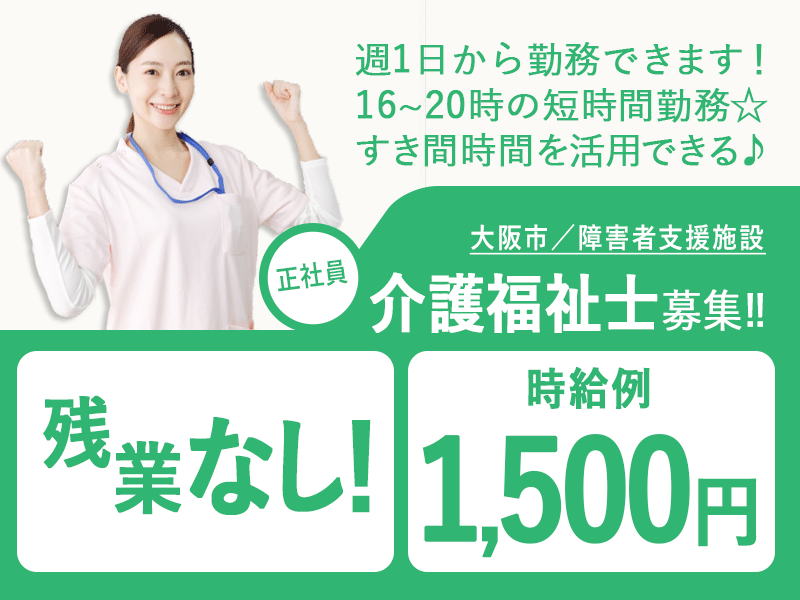 ≪大阪市/介護福祉士/パート≫★時給例1,500円◎残業なし◎曜日固定のシフトも相談可能◎入居定員19名の小規模ホーム◎交通費支給★ 障がい者ホームでのお仕事です☆(kyo)