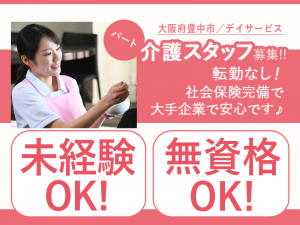 ≪豊中市/無資格介護職 /パート≫★◎日曜固定休◎シフト制◎正社員登用制度あり◎年末年始休暇★デイサービスでのお仕事です☆