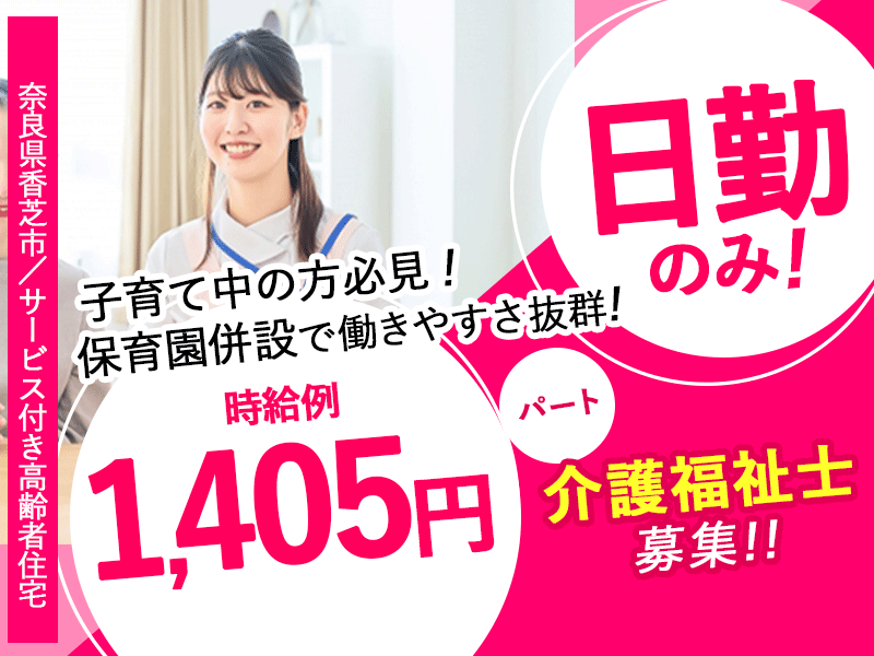 ≪香芝市/介護福祉士/パート≫◆時給例1,405円◎賞与あり◎日勤のみ◎週3日~OK!勤務シフト相談OK◎子育て中の方も働きやすい!保育園併設あり◆住宅型有料老人ホームでのお仕事です☆(kyo)