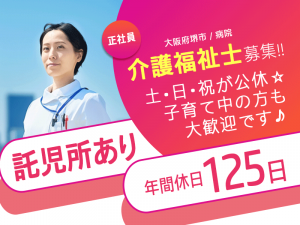 ≪堺市/介護福祉士/正社員≫★土日祝で生活リズムが安定☆年間休日125日☆子育て世代にやさしい◎経験不問★病院のお仕事です☆(osa)