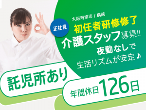 ≪堺市/初任者研修修了/正社員≫★通勤手当あり☆未経験OK☆年間休日125日☆託児所あり☆年末年始休み★病院でのお仕事です☆(osa)